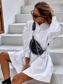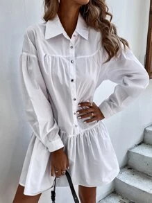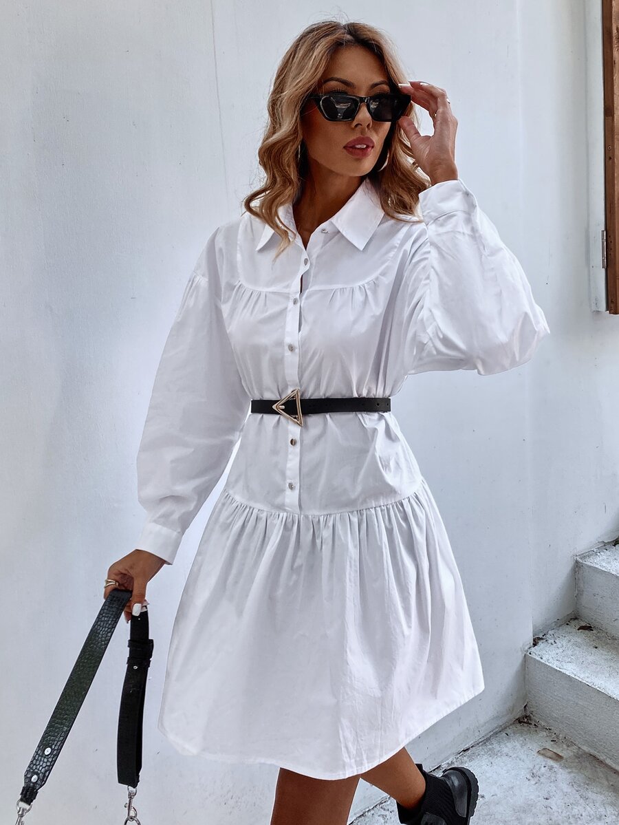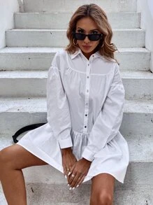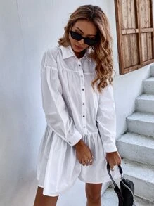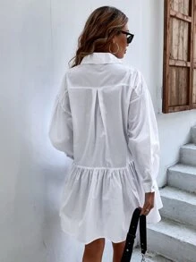 Button Front Ruffle Hem Shirt Dress Without Belt