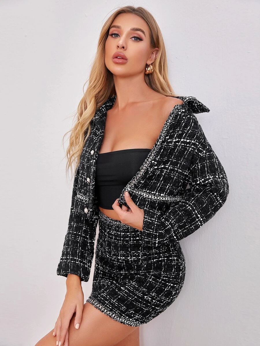 Button Front Tweed Jacket