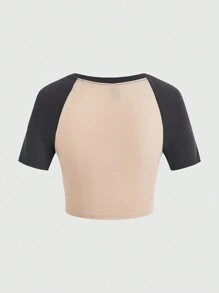 GOLDENLINE Car & Letter Graphic Raglan Sleeve Crop Tee