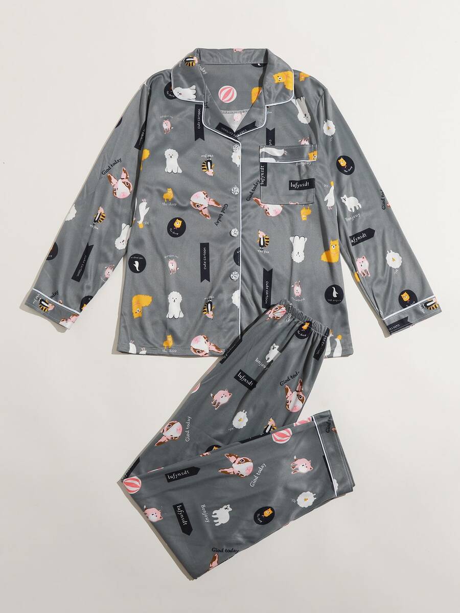 Cartoon Animal Print PJ Set