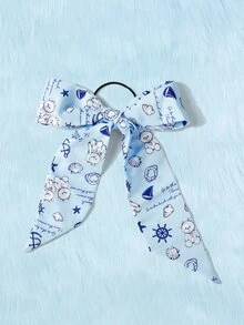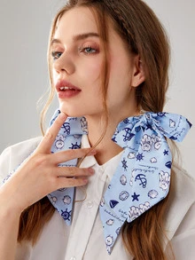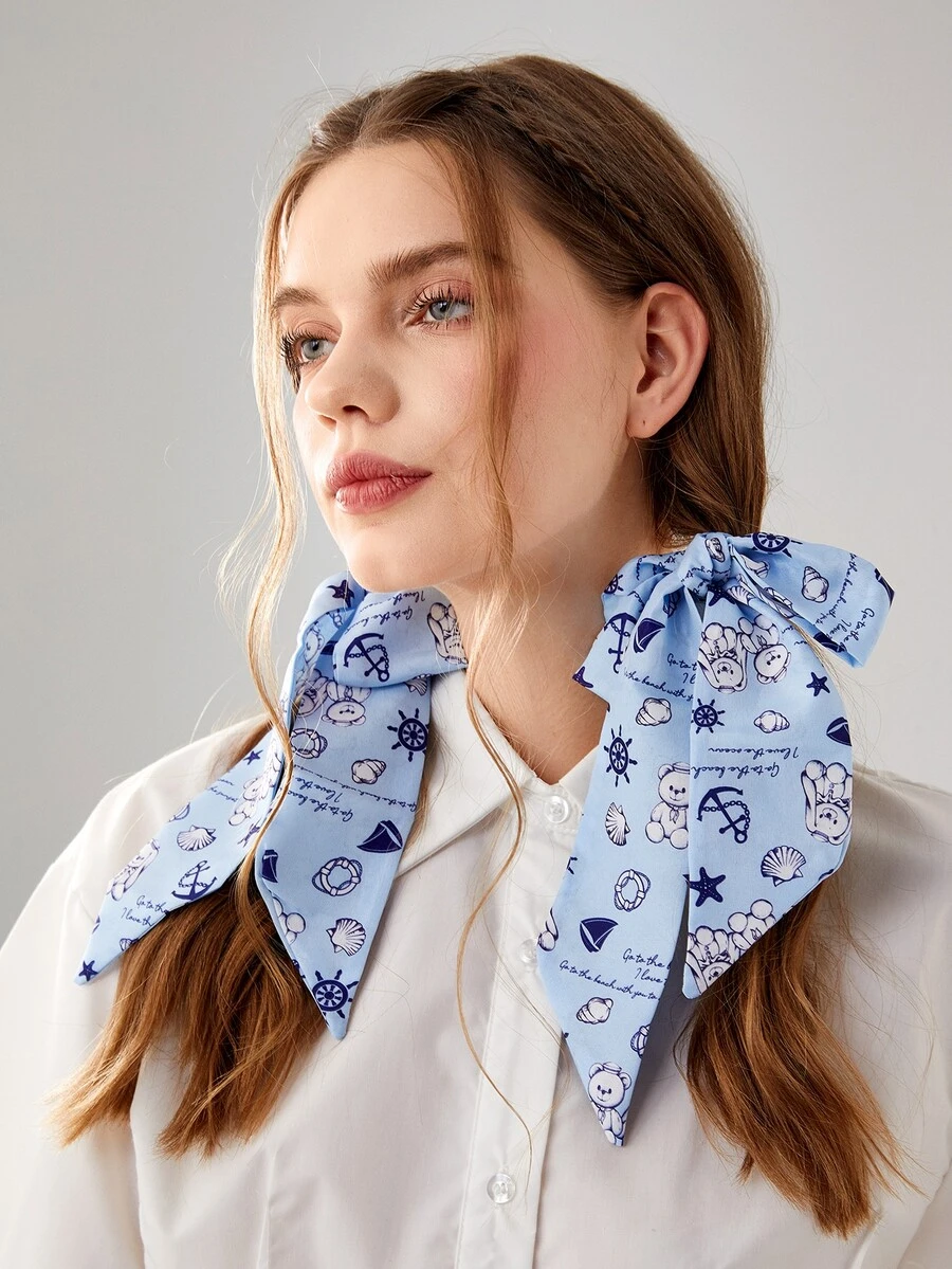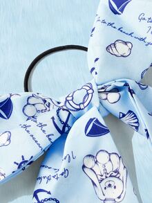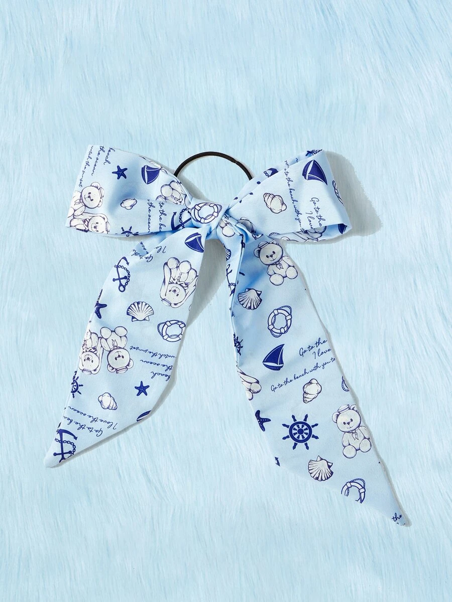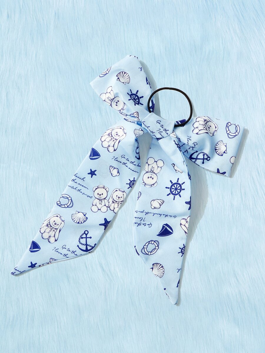 Kawaii Cartoon Bear & Slogan Graphic Scarf Hair Tie