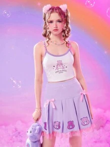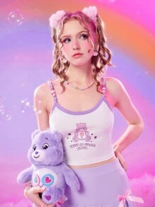 ROMWE X Care Bears Cartoon Graphic Contrast Binding Cami Top