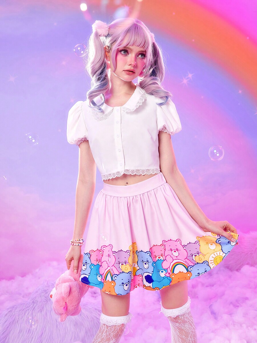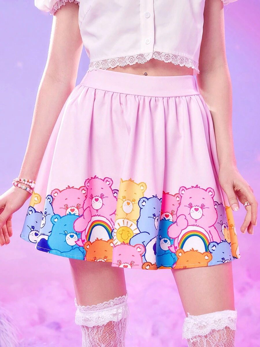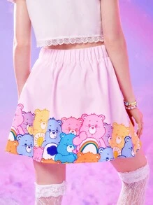 ROMWE X Care Bears Cartoon Graphic Flared Skirt