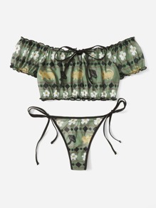 Cartoon Graphic Frill Trim Tie Side Lingerie Set