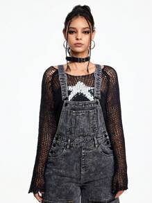 Grunge Punk Casual Distressed Washed Color 3D Pocket Women's Denim Overalls, Suitable For Pairing With Tops And Shirts In Autumn/Winter