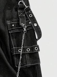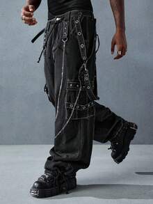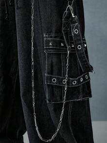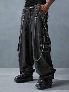 Street Life Casual Loose Fit Chain Decor Men's Wide Leg Jeans