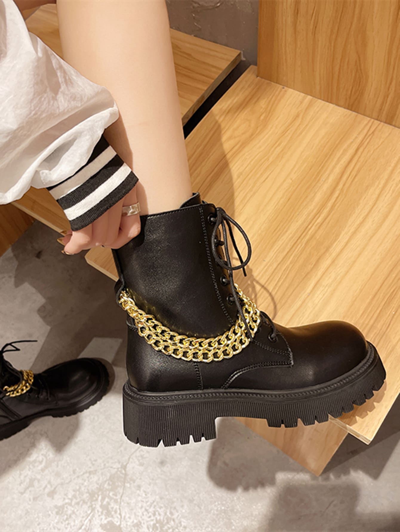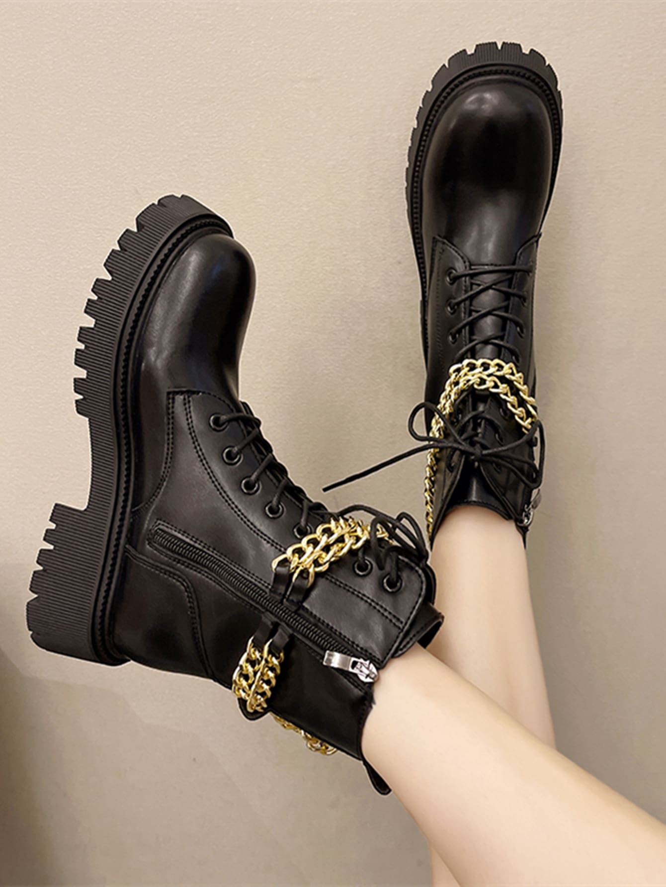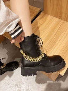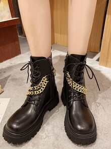 Chain Decor Lace-up Front Combat Boots