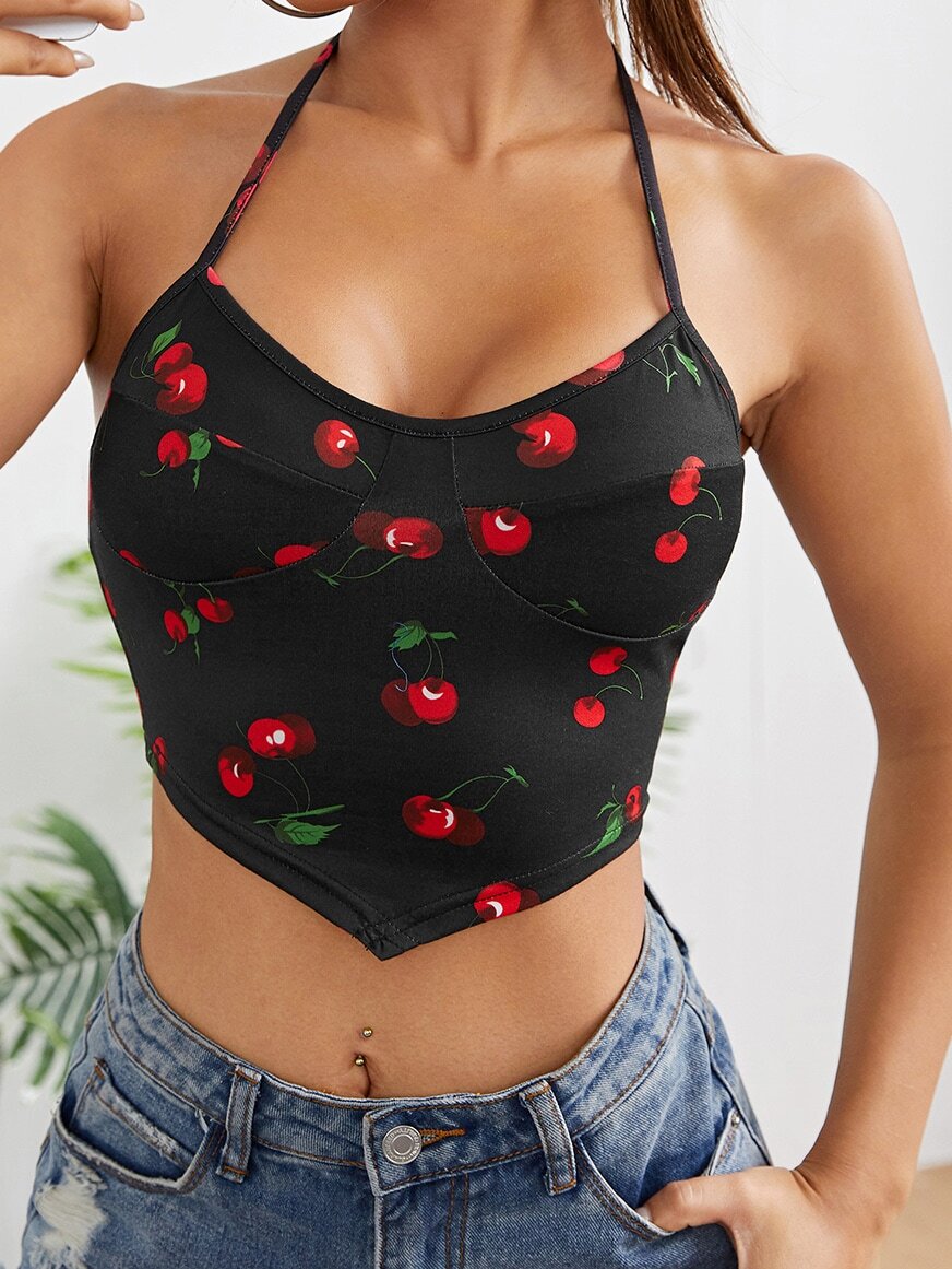 Cherry Print Halter Top
