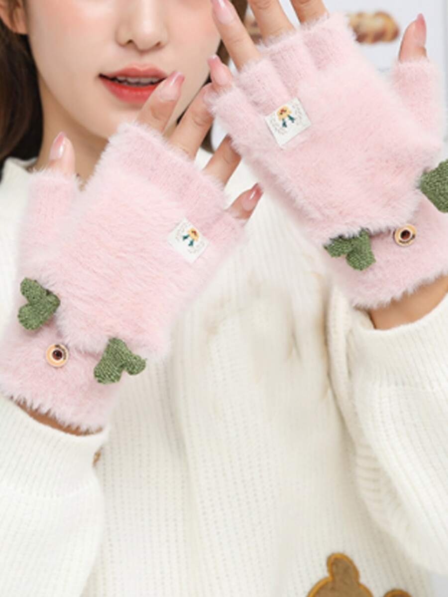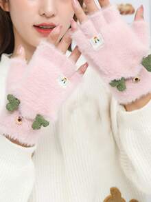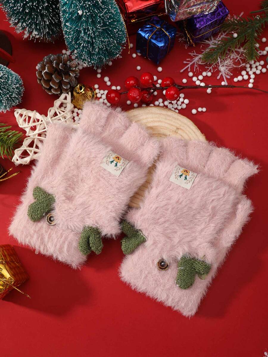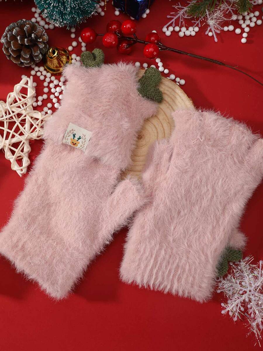 Christmas Antler & Elk Label Decor Fuzzy Gloves