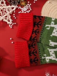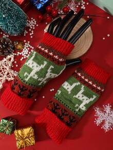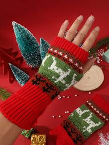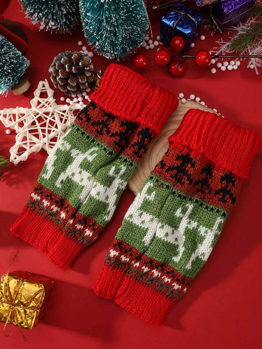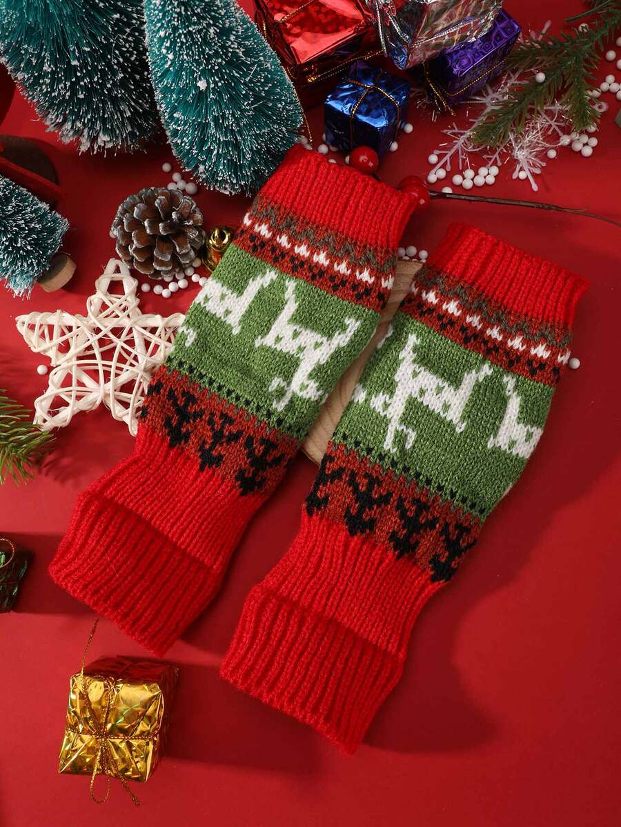 Christmas Elk Pattern Fingerless Gloves