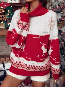 Christmas Pattern Turtleneck Drop Shoulder Sweater