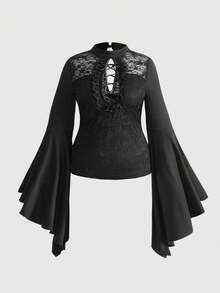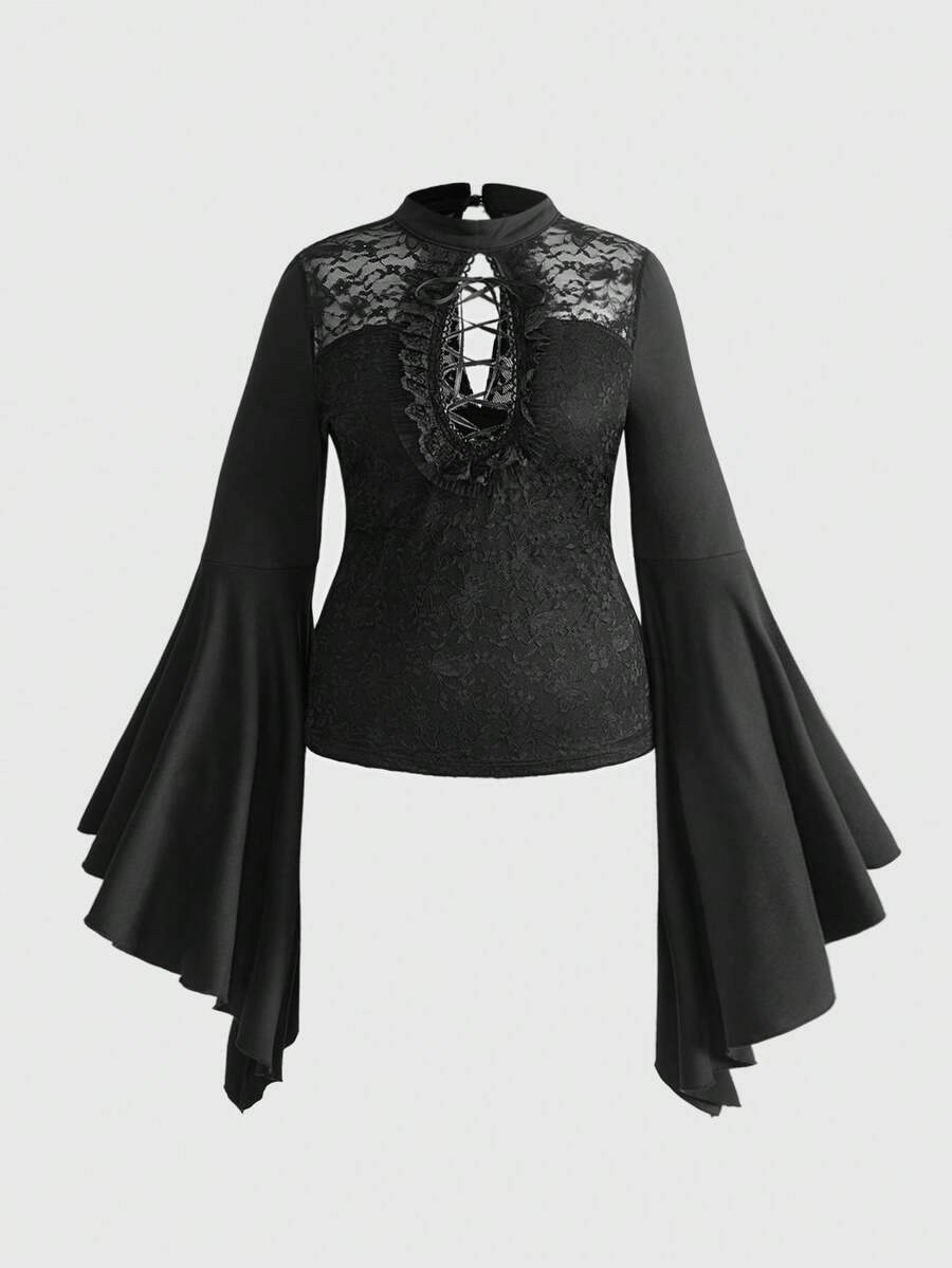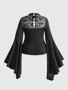 Goth Christmas Plus Size Gothic Lace Sexy Hollow Design Flare Sleeve Top