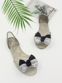 Clear Rhinestone Bow Decor Jelly Sandals