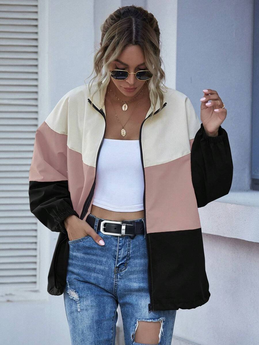 Colorblock Zip-Up Windbreaker Jacket