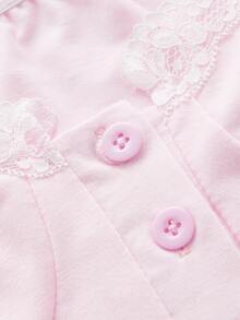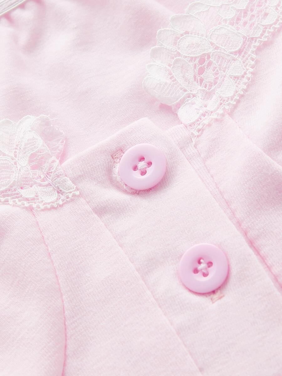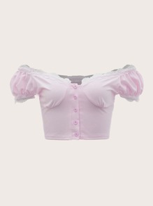 Contrast Lace Puff Sleeve Crop Top