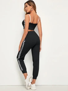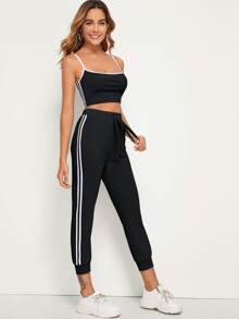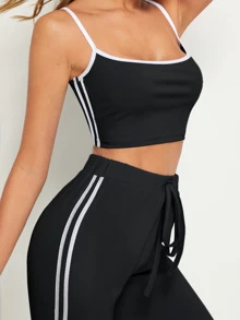 Contrast Trim Crop Cami Top With Tape Side Drawstring Waist Pants