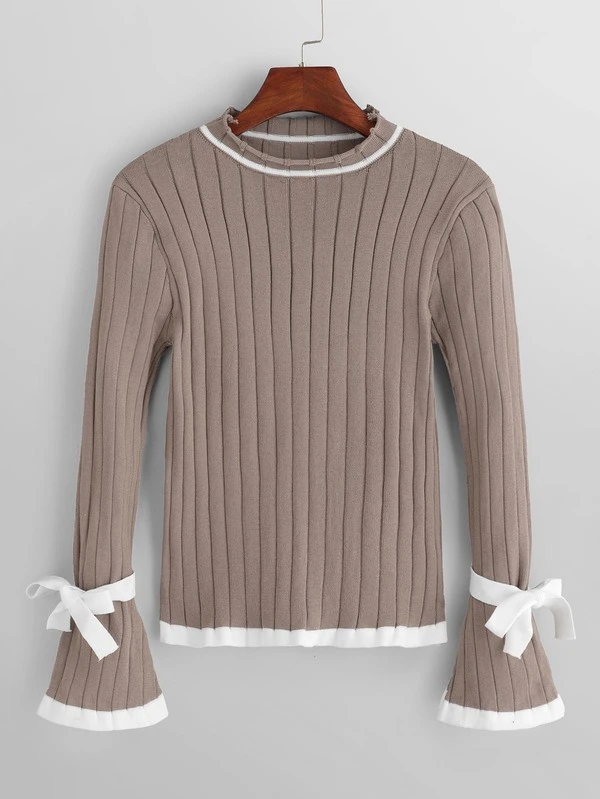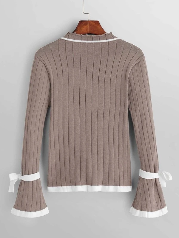 Contrast Trim Flounce Sleeve Jumper