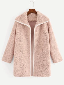 Contrast Trim Waterfall Teddy Coat