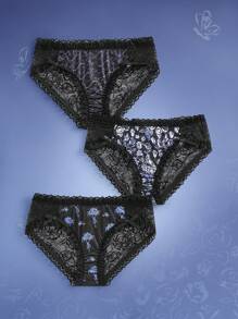 Corpse Bride | ROMWE 3pcs/Pack Women Halloween Full-Print Lace Patchwork Panties