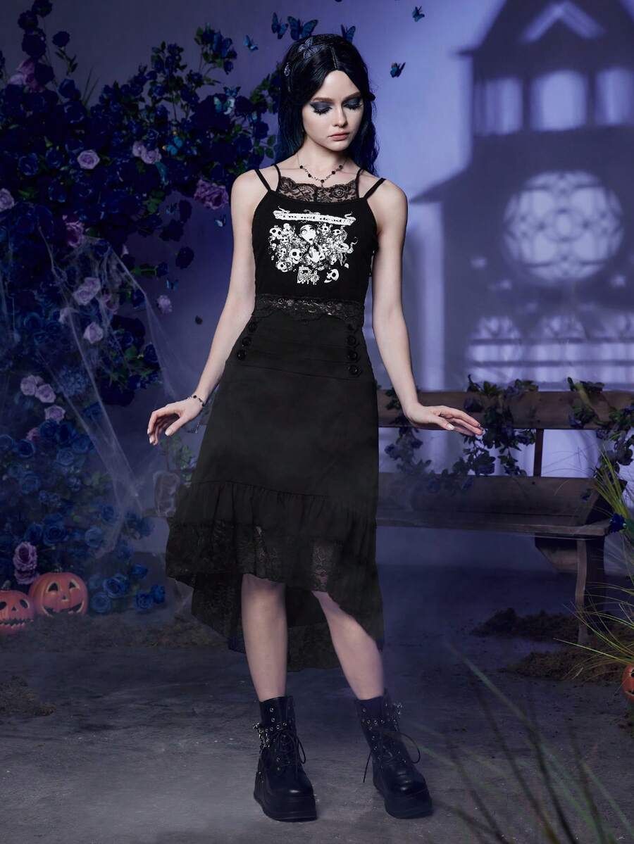 Corpse Bride | ROMWE Slogan Skull Print Contrast Lace Cami Top