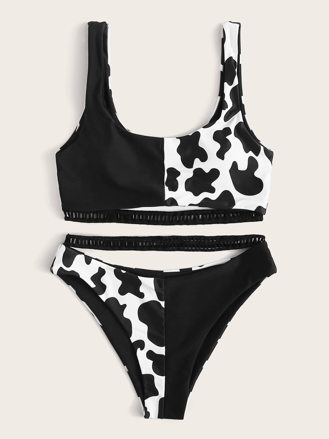Cow Print Strap High Leg Bikini Set Summer Beach
