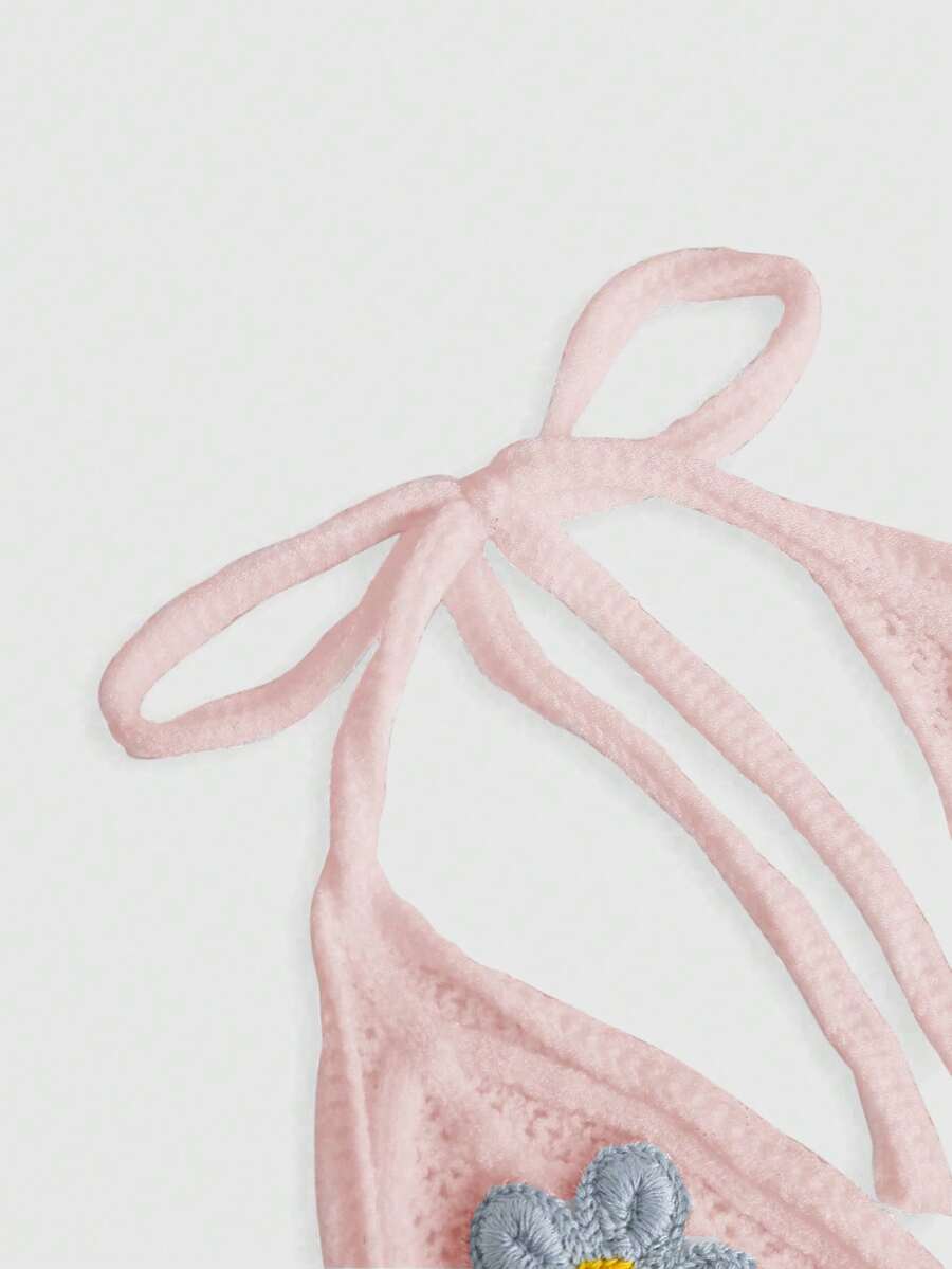 Crochet Floral Halter Neck Casual Top, Vacation Style