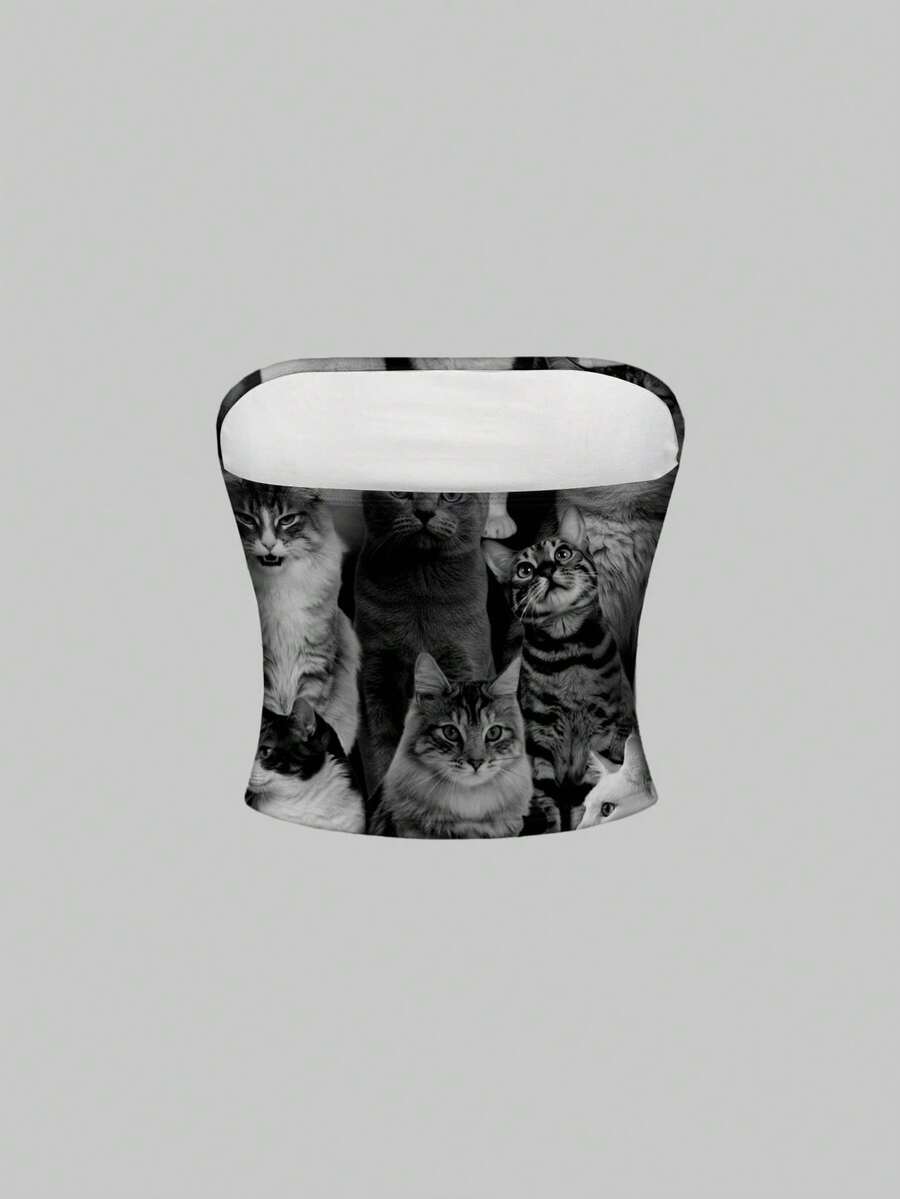 Grunge Punk Cute Dark Cat All-Over Print Vintage Style Women Top