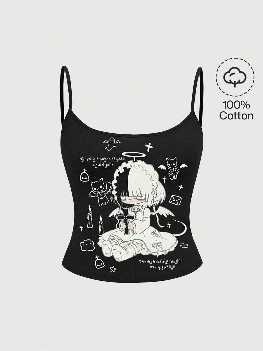 Cute Korean Kawaii Cross Gothic Melancholy Candle Goth Dark Mysterious Women Tank Top