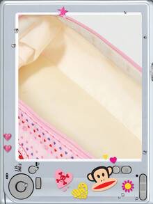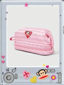 Paul Frank X ROMWE Cute Pink Heart Print Cosmetic Bag With Adorable Donut Charm For Travel Organizer & Makeup Storage