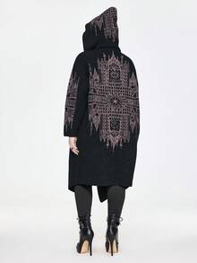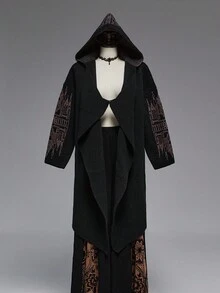 EDITION Dark Gothic Palace Print Fringe Trim Plus Size Hooded Cardigan