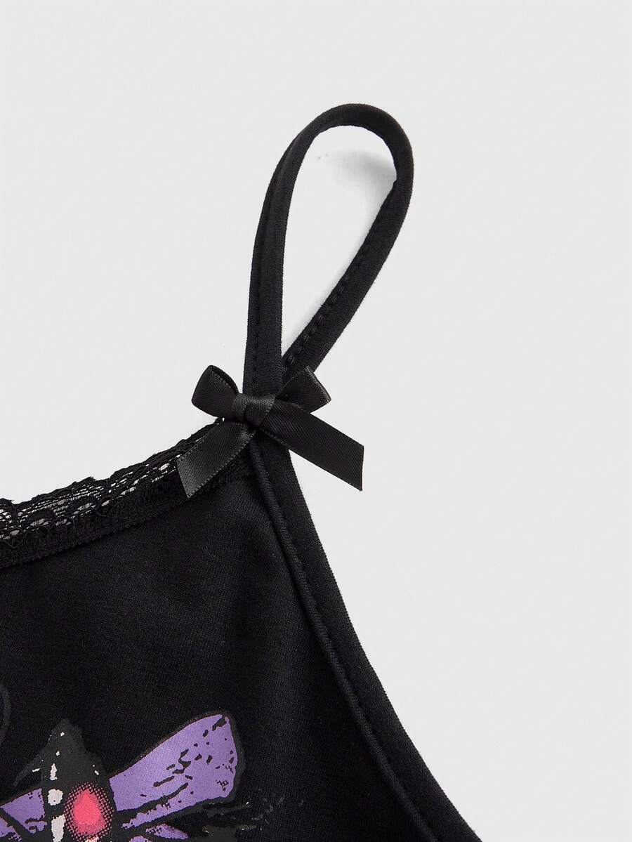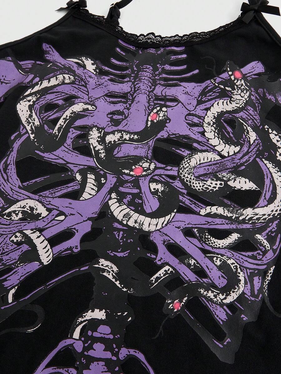 Dark Gothic Skeleton & Snake Printed Slim-Fit Women Tank Top