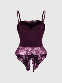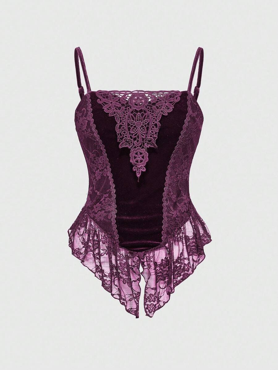 Goth Dark Halloween Velvet & Contrast Lace Camisole