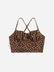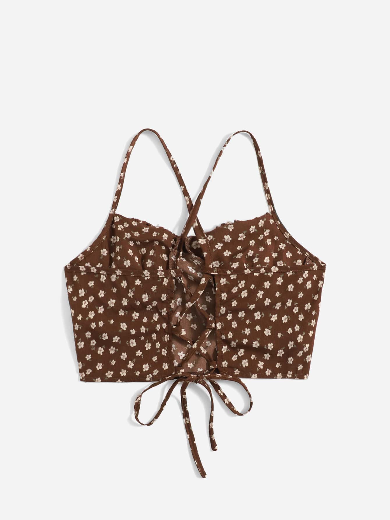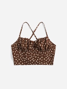 Ditsy Floral Criss Cross Lace Up Cami Top