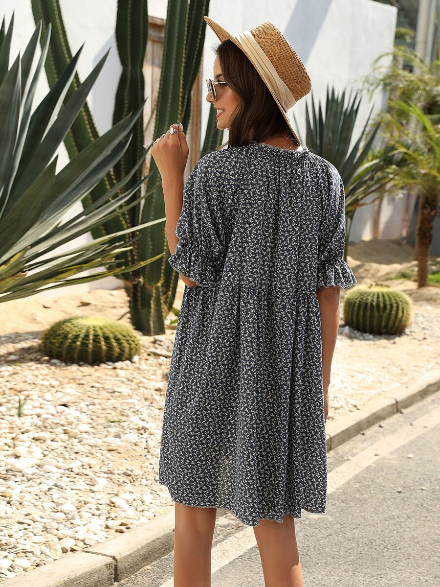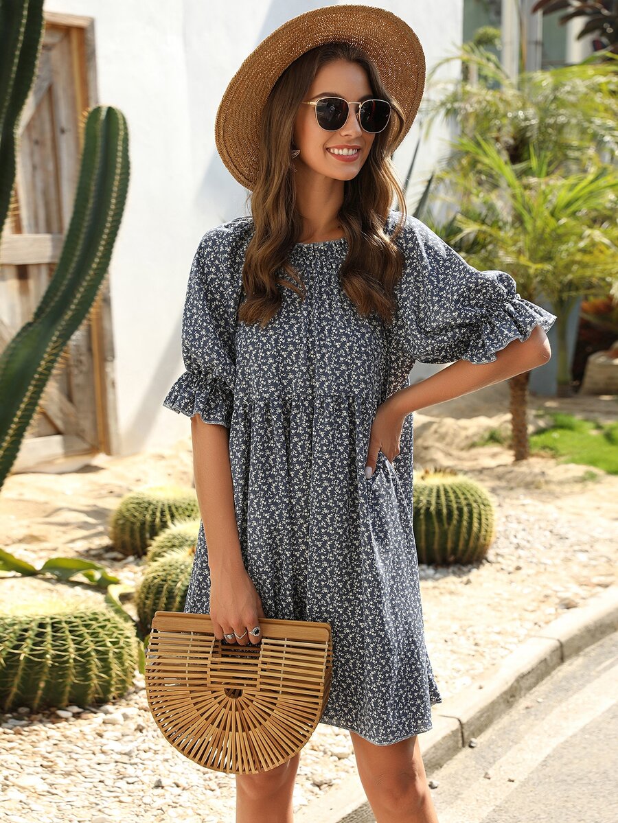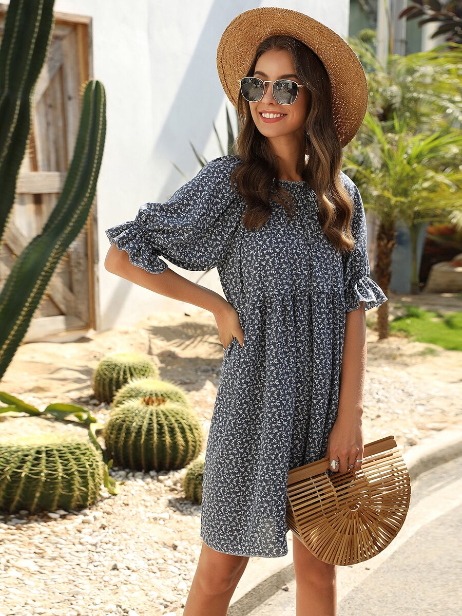 Ditsy Floral Flounce Sleeve Babydoll Dress