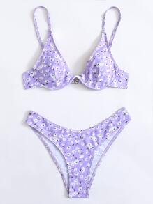 Ditsy Floral High Cut Bikini Set Summer Beach