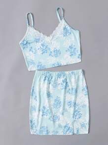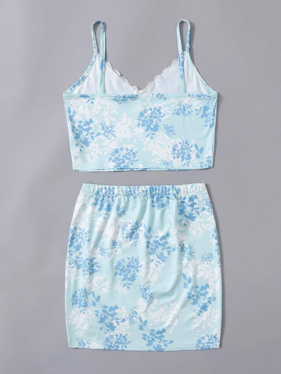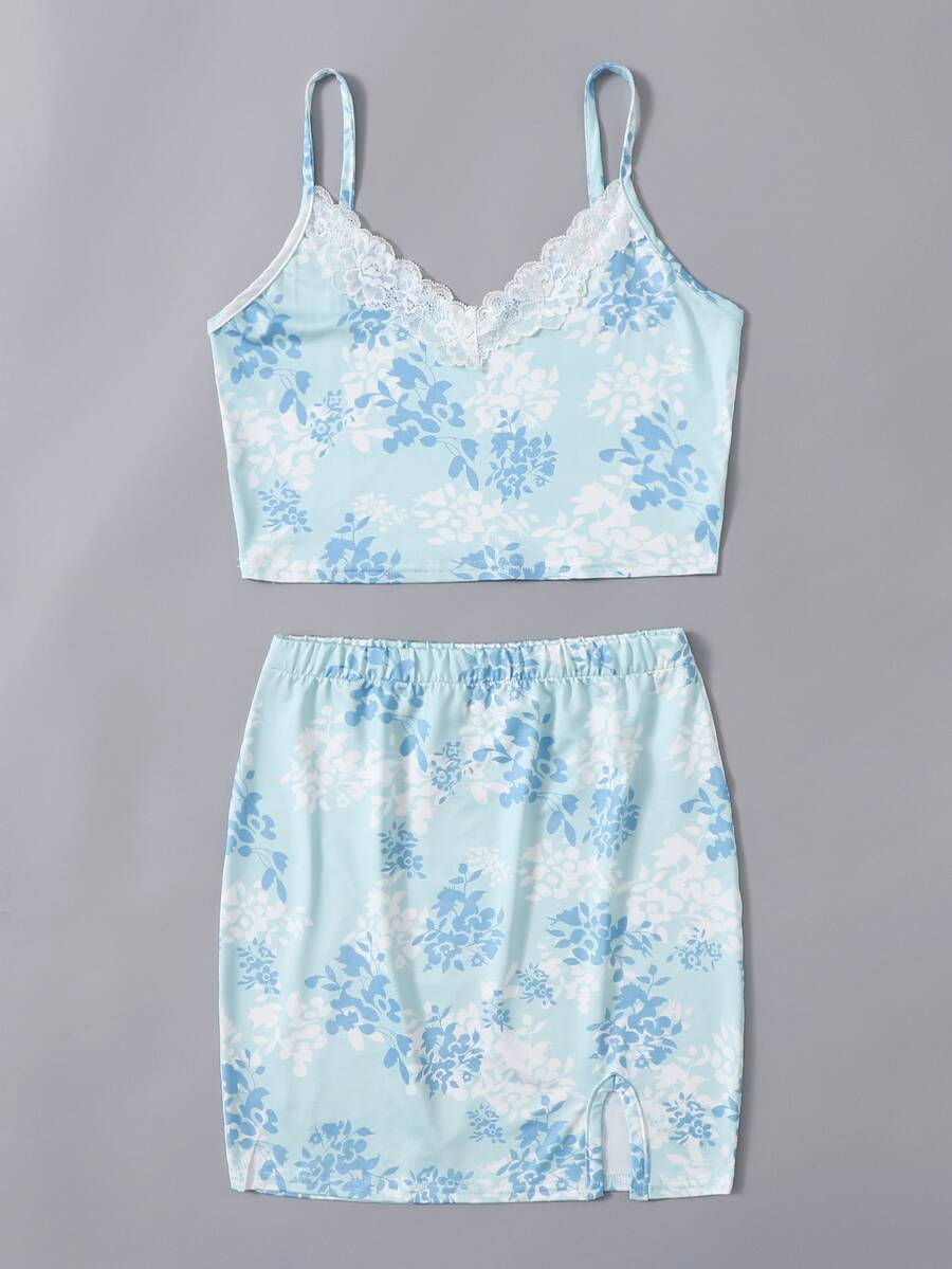Ditsy Floral Lace Insert Cami & Split Skirt
