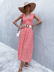 Ditsy Floral Peter Pan Collar Dress Without Belt