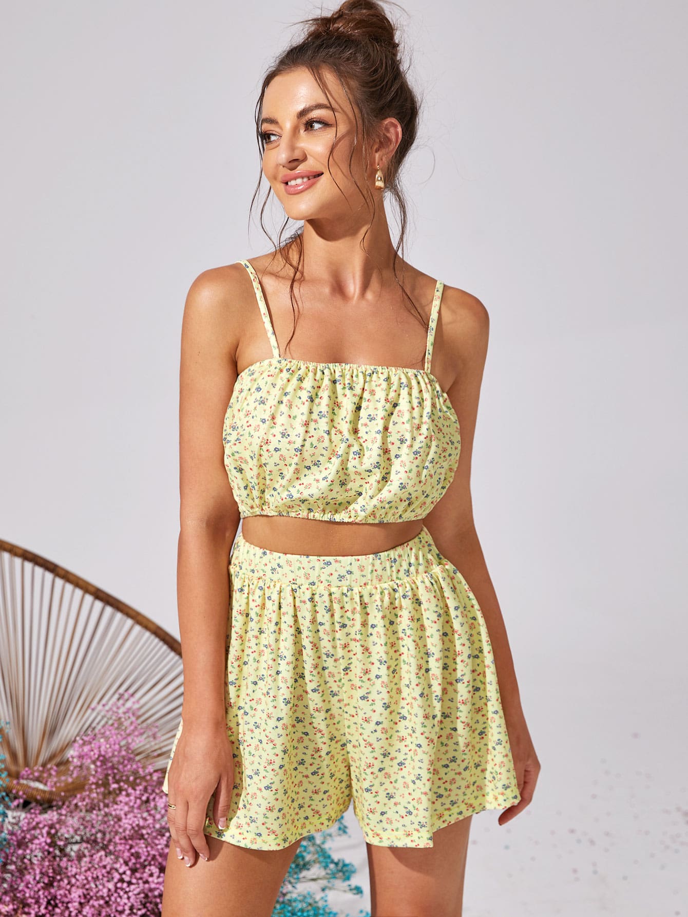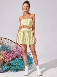 Ditsy Floral Print Crop Cami Top & Skirt Set