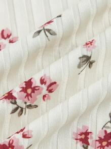 Ditsy Floral Print Lettuce Trim Crop Tee