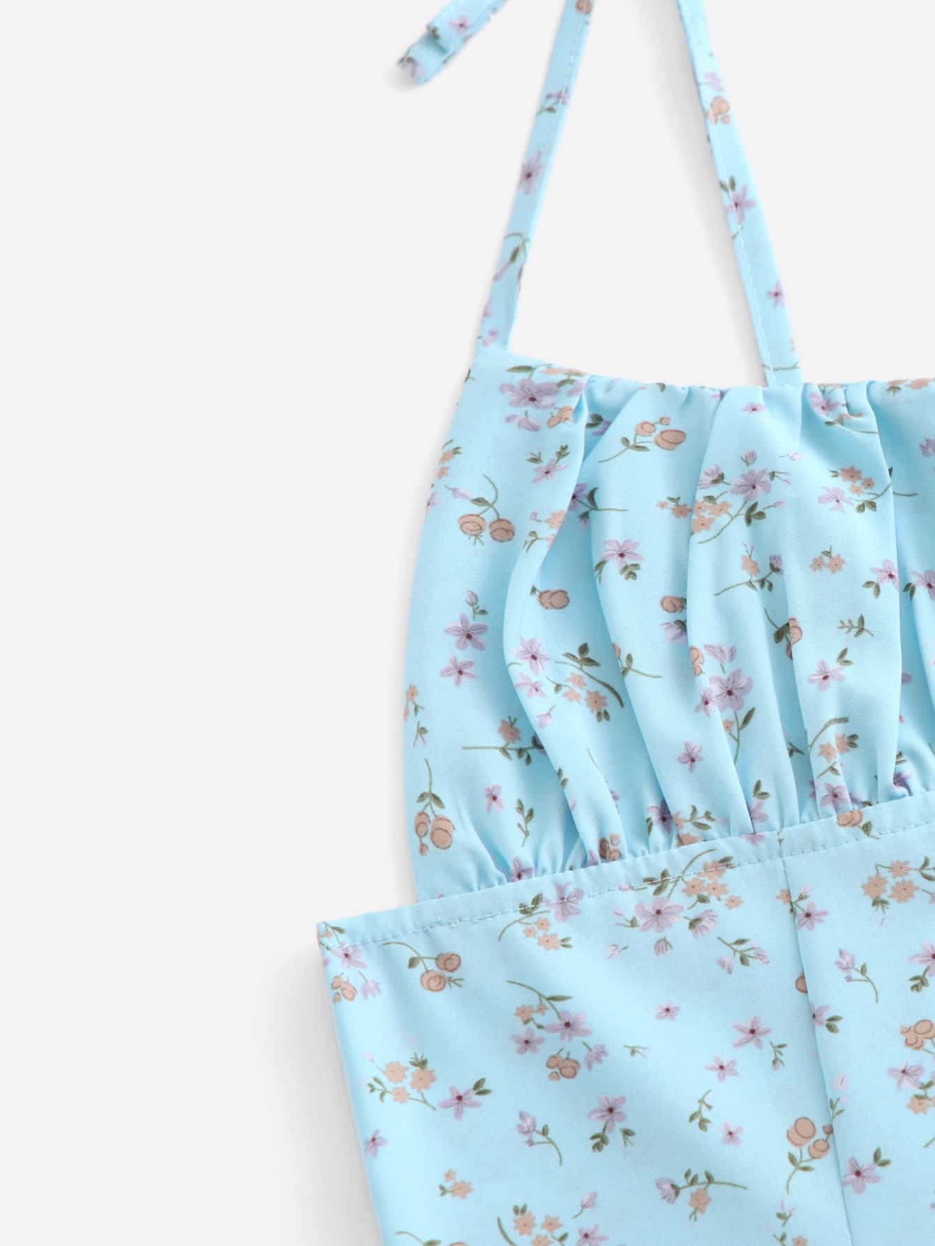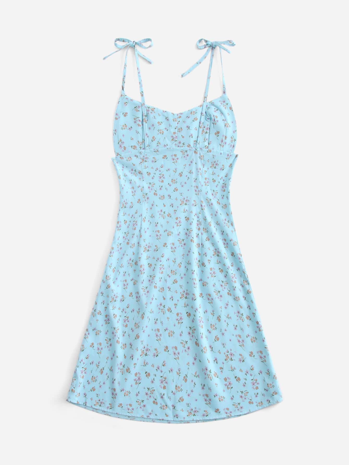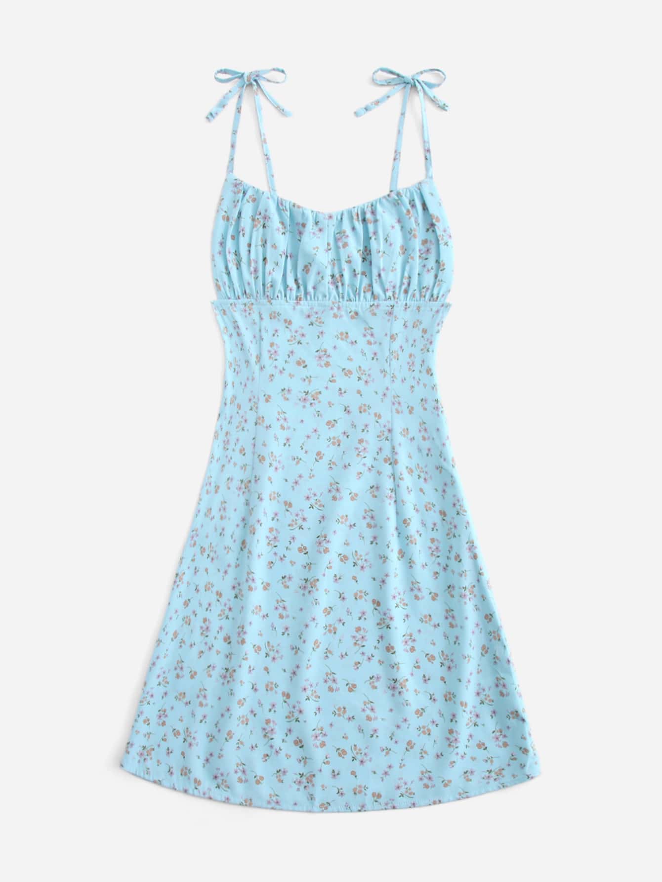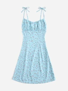 Ditsy Floral Ruched Bust Tie Shoulder Dress