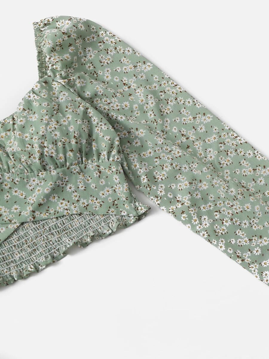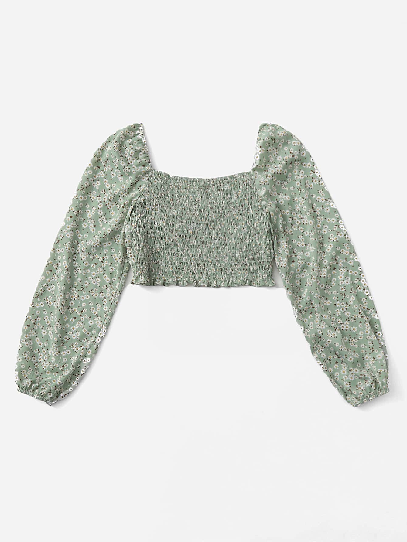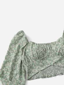 Ditsy Floral Shirred Bishop Sleeve Blouse
