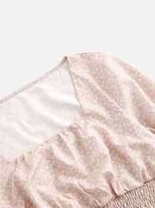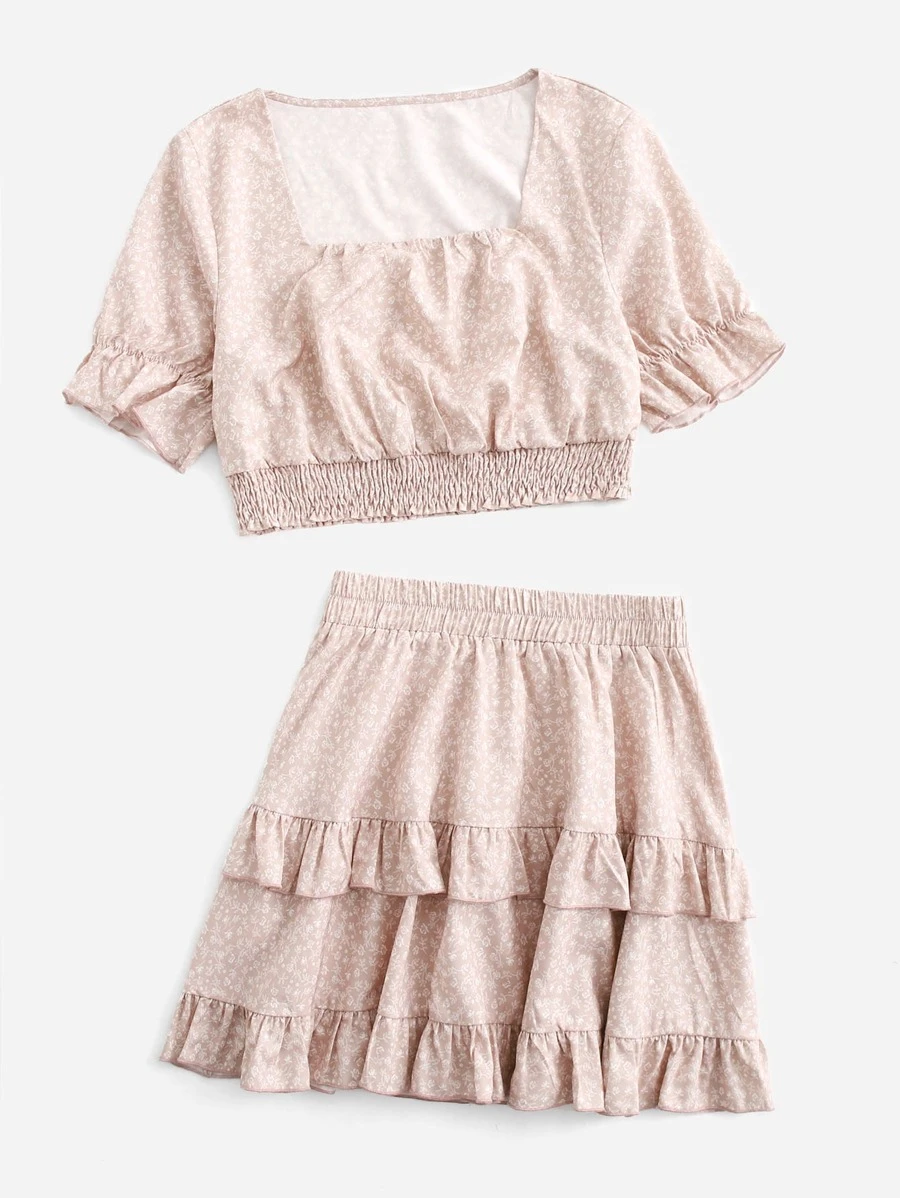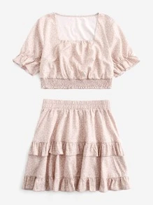 Ditsy Floral Shirred Blouse & Ruffle Trim Skirt