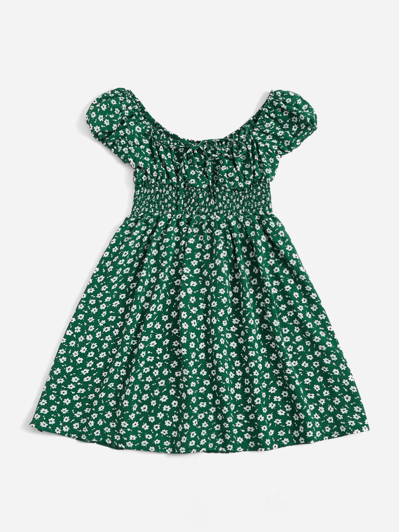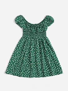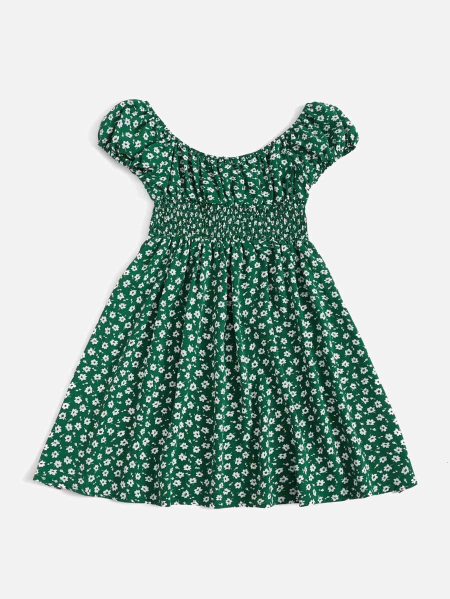 Ditsy Floral Shirred Puff Sleeve Dress