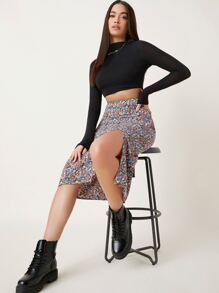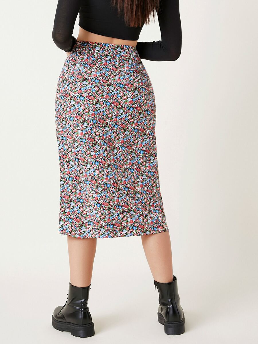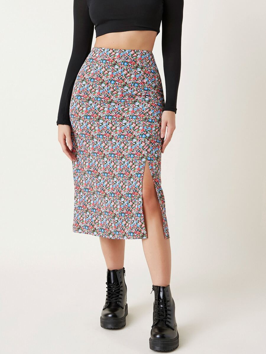 Ditsy Floral Slit Hem Skirt