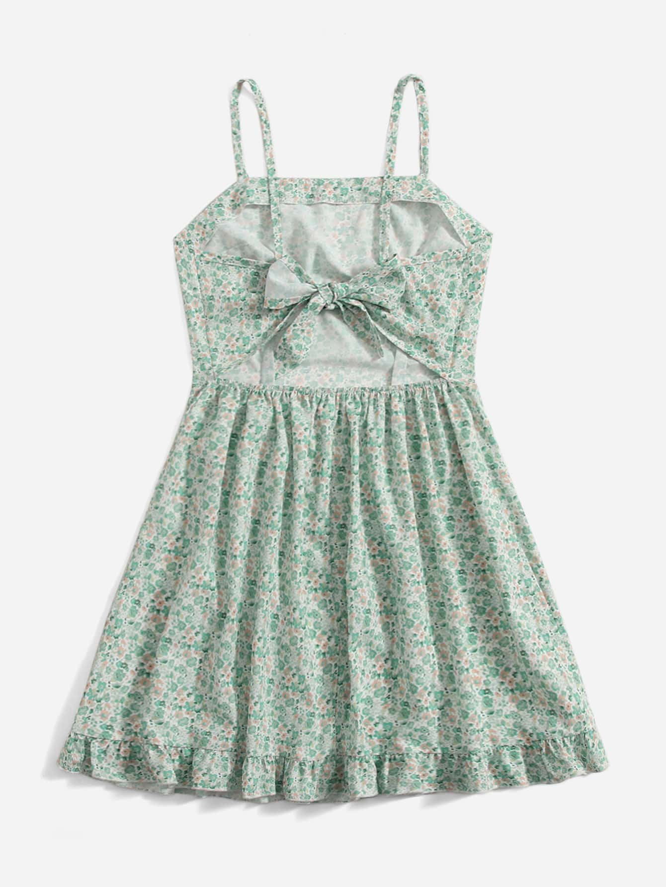 Ditsy Floral Tie Backless Ruffle Hem Cami Dress
