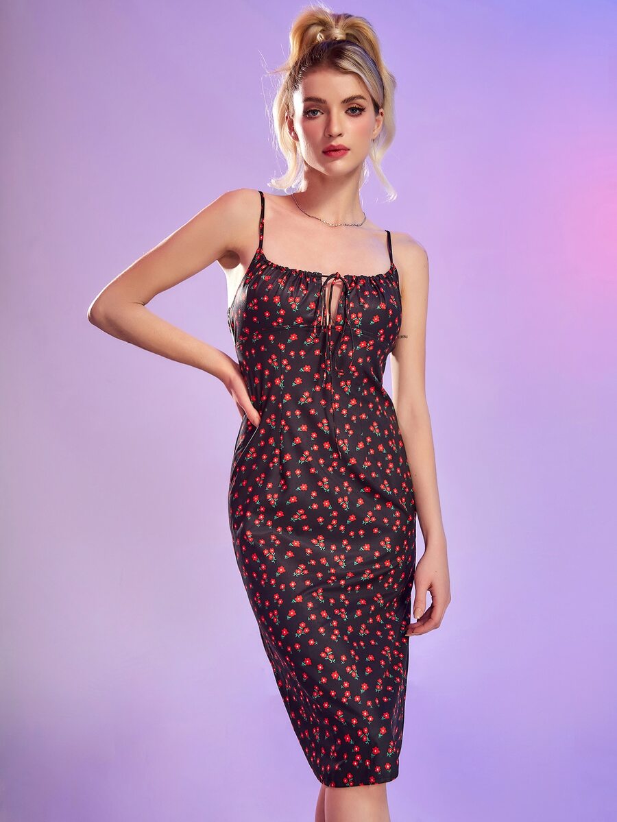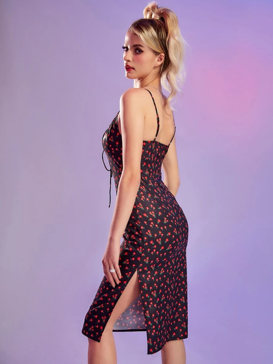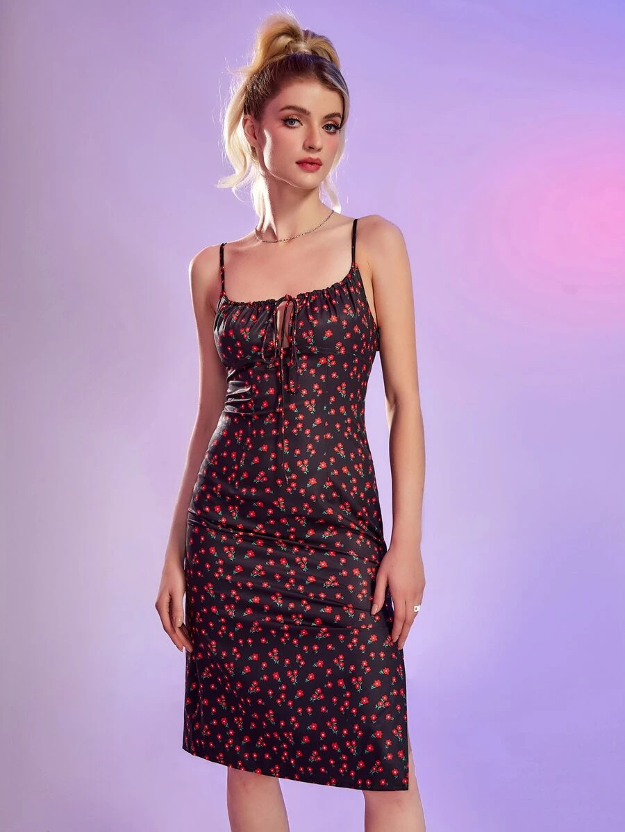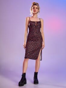 Ditsy Floral Tie Front Split Thigh Cami Dress