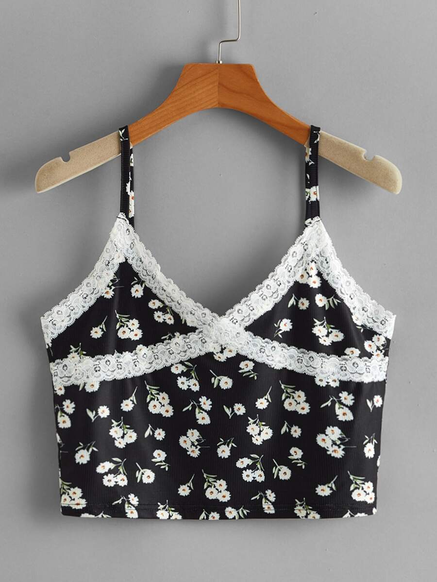 Ditsy Flower Contrast Lace Crop Cami