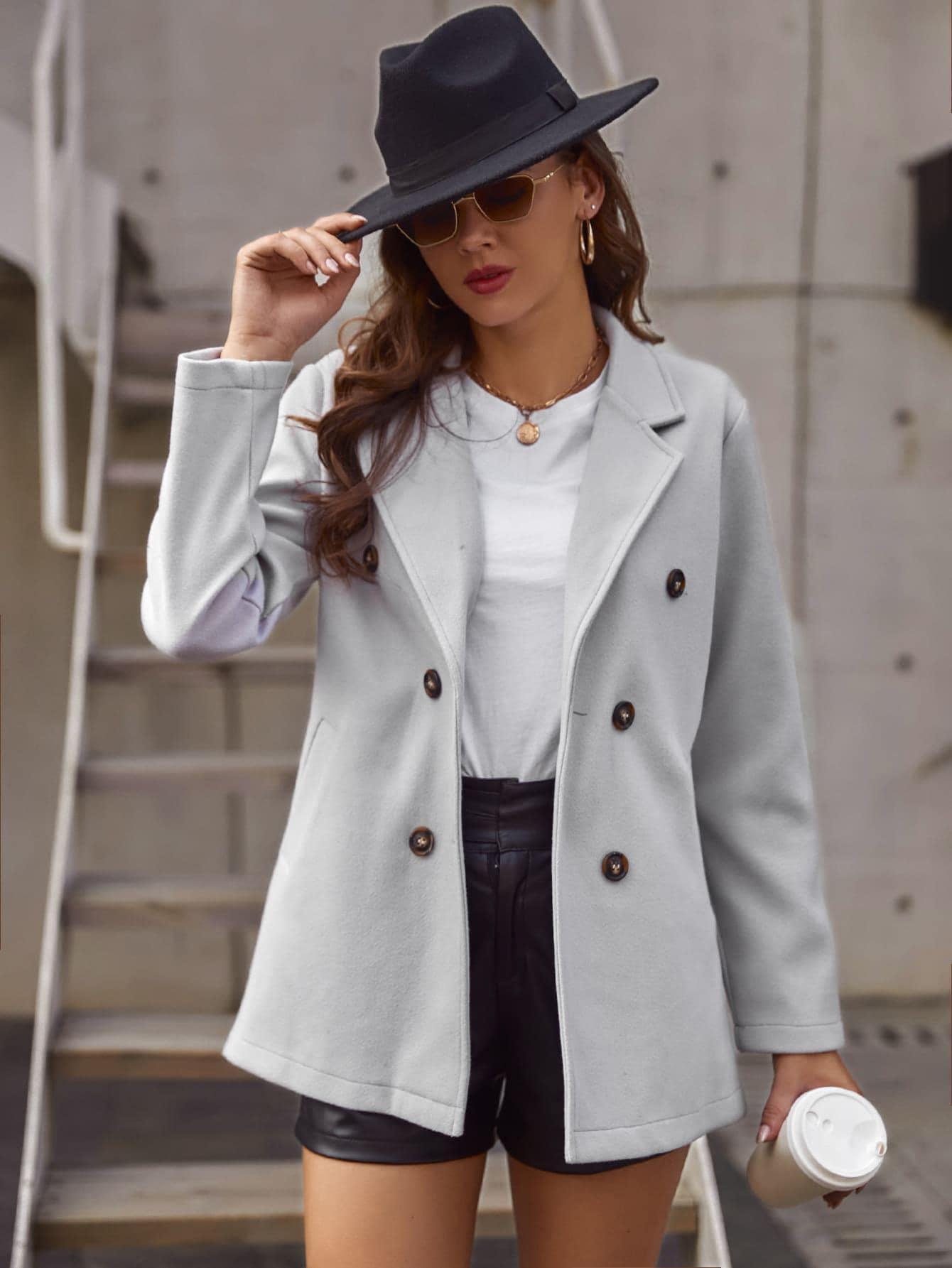 Double-breasted Lapel Neck Overcoat