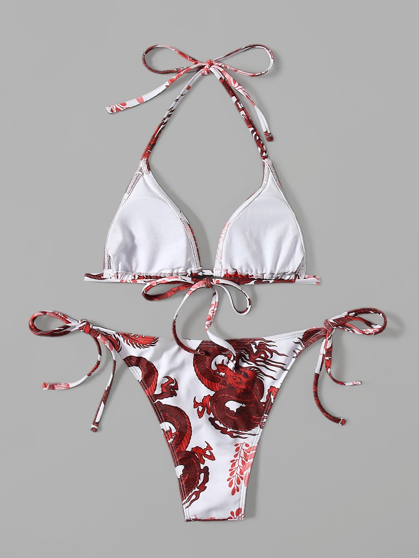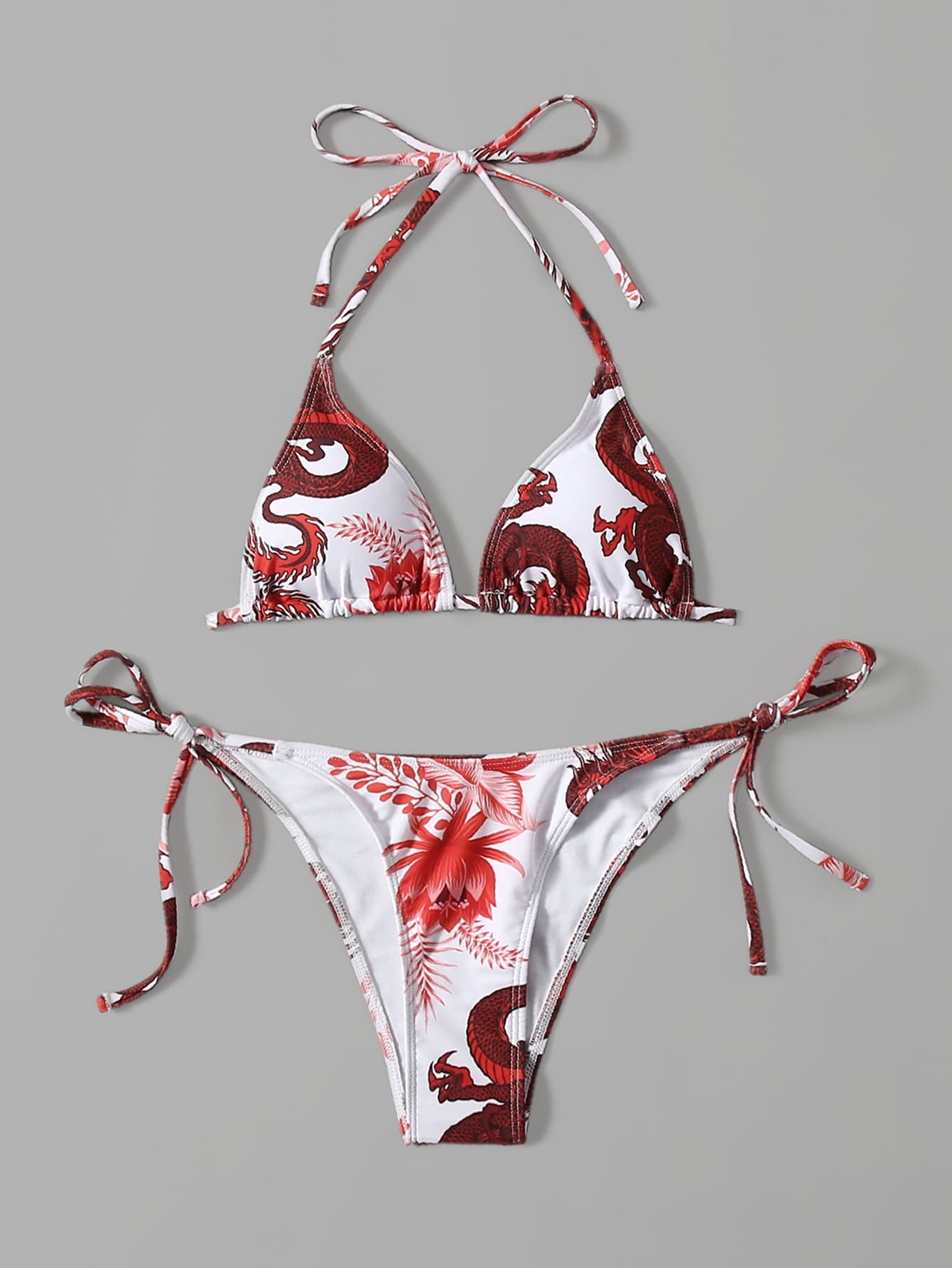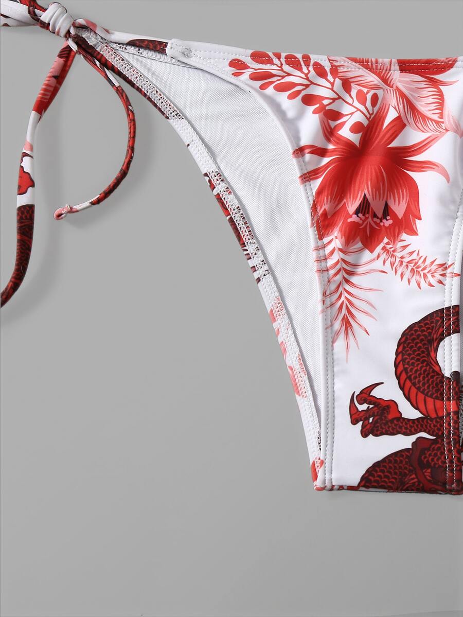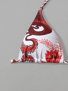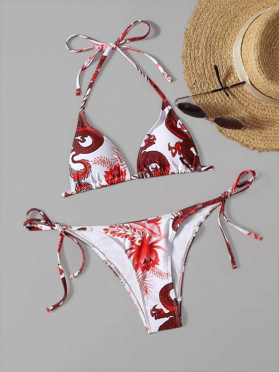 Dragon Print Halter Tie Side Bikini