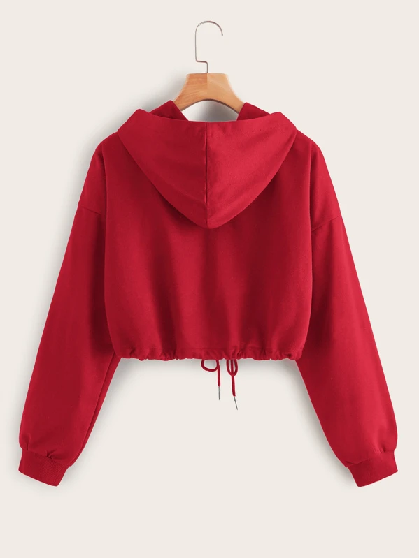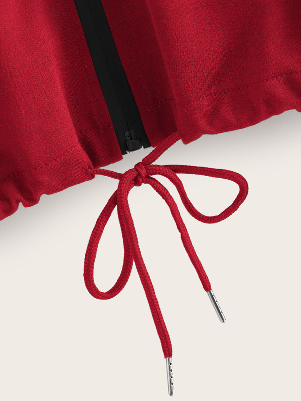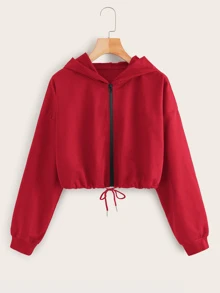 Drawstring Crop Zip Hoodie
